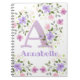 Design features the baby's Monogram & Name with Flowers either side in a water colour pastel style. Initial is the letter A. Annabelle