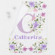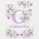 Name is Catherine. Design features Monogram & Name with Flowers either side in a water colour pastel style. Initial is the letter C. Catherine