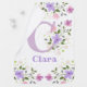 Design features Monogram & Name with Flowers either side in a water color pastel style. Initial is the letter C. Clara
