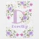 Design features the baby's Monogram & Name with Flowers in a water color pastel style. Initial is the letter D. Example name is Dorothy. Newborn baby gift.