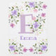 Design features the baby's Monogram & Name with Flowers either side in a water color pastel style. Initial is the letter D. Emma