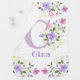 New baby gift idea. Design features Monogram & Name with Flowers either side in a water colour pastel style. Initial is the letter G. Gift for baby Gina.