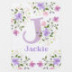 Design features Monogram & Name with Flowers either side in a water color pastel style. Initial is the letter J.