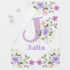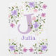 Design features Monogram & Name with Flowers either side in a water color pastel style. Initial is the letter J.