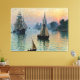 "First Light Expedition" portrays a serene morning scene on the water, capturing the gentle sway of sailboats preparing to depart on an expedition under the soft hues of dawn. The artist employs his signature Impressionist style, using delicate brushstrokes and a palette of muted tones to evoke the tranquil atmosphere of early morning on the water. The play of light and shadow creates a sense of movement and depth, inviting viewers to immerse themselves in the peaceful beauty of the moment.