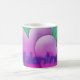 Two hearts in gradient mauve purple colors on a typographic background in green tone + small hearts + "HAPPY VALENTINE'S DAY". Design on white mug. Matching greeting card, keychain, button, magnet and more...