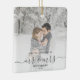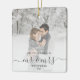First Married Christmas Custom Photo Gray Script Ceramic Ornament