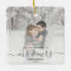 Commemorate the first Christmas of your marriage with this beautiful modern keepsake ornament. The charcoal gray text reads "Our first Christmas as Mr & Mrs," with the words "Mr & Mrs" in elegant handwriting script with flourishes before and after. Replace the sample image with your favorite photo, and add your last name and the year. A white gradient filter helps make the text pop.