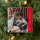 This simple modern Christmas ornament features a trendy wavy red edge along with a large photo and room for custom text and the year. Designed for a newlywed ornament celebrating a first Christmas together, this ornament features one large photo on the front and a second on the back with two places for custom text along with year. This personalized photo holiday ornament is a also great way to commemorate a special event, a family vacation, a graduation, a new baby, a new home and more. This original ornament design by Lea Delaveris Design can be completely customized with your photo and text and is also available in other colors. Find more trendy designs in this modern wavy edge style in the collection!