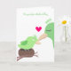 Cute baby bird and green mother bird with red heart. For first-time mother.