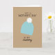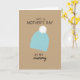 This card features a soft fawn-colored background with a knitted baby cap centered in calming pastel blue, topped with a fluffy white pom-pom that looks cozy enough to cradle a new story of love ❤️. The cap’s simple shape and gentle texture suggest tiny hands and quiet cuddles, like a baby leaning close to someone who feels safe. Across the upper area, the message “HAPPY 1st MOTHER’S DAY” appears in neat sans-serif letters in a dark tone that stands out clearly against the muted backdrop. Near the lower area, “AS MY mummy” is written in a flowing cursive style, also in a dark shade, adding a tender, close-to-home note 🌼. The roomy spacing around the cap keeps the focus on that sweet, comforting centerpiece, like a small gift placed carefully on a table. The earthy background and cool blue cap balance each other, giving the scene a calm, affectionate warmth without feeling busy. Fine knit lines are visible on the cap, and the pom-pom is drawn as a soft white puff with light, feathery edges.