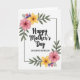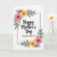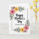 This design shows a white card centered on a thin black rectangular outline, with a romantic, caring tone suggested by the gentle way the florals seem to lean inward toward the message ❤️. Large black lettering across the middle reads “Happy Mother’s Day,” and a smaller all-caps line beneath it says “ON YOUR FIRST MOTHER’S DAY.” The main words sit slightly higher in the frame, while the smaller line is tucked neatly below, keeping the layout balanced and easy to read. In the top-left and bottom-right corners, watercolor-style flower clusters bloom outward like a soft embrace, hinting at closeness and support. Soft pink petals mix with sunny yellow blossoms, with little touches of lavender and deeper pink scattered between muted green leaves 🌼. The background stays bright white so the black text and the gentle colors stand out without feeling heavy. The leaves are painted in layered, slightly dusty greens, and the petals have light, feathery edges with a few darker brush marks near the centers.