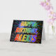 This multicolored and fun birthday greeting card design features the message "HAPPY BIRTHDAY," and the common first name "ALEXIS" with the letters having a colorful rainbow spectrum like gradient coloring pattern. The background of the front also features a colorful pattern inspired by the appearance of bursting fireworks. The inside features a personalized greeting message, or could perhaps be cleared and left blank if a message is to be written by hand instead. A birthday greeting card like this might be a fun way to acknowledge the birthday of somebody named Alexis. [~Z0000350]