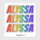 This vibrant, fun, and exciting sticker design features the common first name or given name "ALYSSA", with the letters of the name having a colorful rainbow spectrum like gradient coloring pattern. It might be a fun gift to give to somebody whose first name is Alyssa. [~Z0000361]