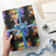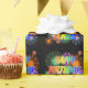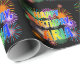 This lively and vibrant birthday-themed wrapping paper design features the message "HAPPY BIRTHDAY, ARIA" having a colorful rainbow spectrum inspired gradient pattern, and an exciting bursting celebratory fireworks inspired background pattern. Vibrant wrapping paper like this might be used when wrapping birthday gifts that are being given to somebody named Aria. [~Z0000456]