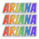 This exciting, fun, and multicolored sticker design features the common first name or given name "ARIANA", with the letters of the name having a colorful rainbow spectrum like gradient coloring pattern. It might be a fun present to give to somebody whose first name is Ariana. [~Z0000361]