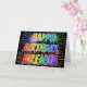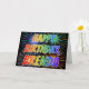 This fun, vibrant, multicolored birthday greeting card design features the message "HAPPY BIRTHDAY," and the common first name "BRENDA" with the letters having a colorful rainbow spectrum like gradient coloring pattern. The background of the front also features a colorful bursting fireworks inspired pattern. The inside features a custom greeting message, or could perhaps be cleared and left blank if a message is to be written by hand instead. A greeting card like this could be a fun way to acknowledge the birthday of somebody named Brenda. [~Z0000350]