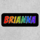 This fun, vibrant name patch design features the common first name "BRIANNA", with the letters of the name having a colorful rainbow spectrum inspired gradient coloring pattern, on a black colored background. It might be a fun gift to give to somebody whose first name is Brianna. [~Z0000505]