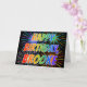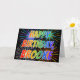 This multicolored and fun birthday greeting card design features the message "HAPPY BIRTHDAY," and the common first name "BROOKE" with the letters having a colorful rainbow spectrum like gradient coloring pattern. The background of the front also features a colorful pattern inspired by the appearance of bursting celebratory fireworks. The inside features a personalized greeting message, or could perhaps be cleared and left blank if a message is to be written by hand instead. A greeting card like this might be a fun way to send a personalized birthday message to somebody named Brooke. [~Z0000350]