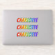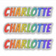 This vibrant, fun, and exciting sticker design features the common first name or given name "CHARLOTTE", with the letters of the name having a colorful rainbow spectrum like gradient coloring pattern. It might be a fun present to give to somebody whose first name is Charlotte. [~Z0000361]