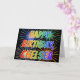 This multicolored and fun birthday greeting card design features the message "HAPPY BIRTHDAY," and the common first name "CHELSEA" with the letters having a colorful rainbow spectrum like gradient coloring pattern. The background of the front also features a colorful bursting fireworks inspired pattern. The inside features a customized greeting message, or could perhaps be cleared and left blank if a message is to be written by hand instead. A greeting card like this could be a fun way to celebrate the birthday of somebody named Chelsea. [~Z0000350]