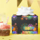 This exciting and fun birthday-themed wrapping paper design has the message "HAPPY BIRTHDAY, CHRISTOPHER" having a colorful rainbow spectrum inspired gradient pattern, and a vibrant bursting celebratory fireworks inspired background pattern. Colorful wrapping paper like this might be used when wrapping birthday gifts/presents that are being given to somebody named Christopher. [~Z0000456]