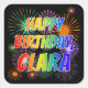 First Name "CLARA", Fun "HAPPY BIRTHDAY" Square Sticker