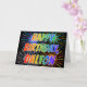 This fun, vibrant, multicolored birthday greeting card design features the message "HAPPY BIRTHDAY," and the common first name "DALTON" with the letters having a colorful rainbow spectrum like gradient coloring pattern. The background of the front also features a colorful bursting fireworks inspired pattern. The inside features a customizable greeting message, or could perhaps be cleared and left blank if a message is to be written by hand instead. A birthday greeting card like this could be fun to give to somebody named Dalton on their birthday. [~Z0000350]