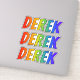 This multicolored, fun, and vibrant sticker design features the common first name or given name "DEREK", with the letters of the name having a colorful rainbow spectrum like gradient coloring pattern. It might be a fun gift to give to somebody who is named Derek. [~Z0000361]