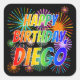 First Name "DIEGO", Fun "HAPPY BIRTHDAY" Square Sticker