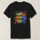 This vibrant and lively shirt design has an exciting bursting celebratory fireworks inspired pattern, and the message "HAPPY BIRTHDAY, DILLON" having a colorful rainbow spectrum inspired gradient pattern. Shirts like this might be worn by the attendees at a birthday party being held for somebody named Dillon. [~Z0000453]
