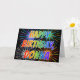 This fun, vibrant, multicolored birthday greeting card design features the message "HAPPY BIRTHDAY," and the common first name "DONNA" with the letters having a colorful rainbow spectrum like gradient coloring pattern. The background of the front also features a colorful pattern inspired by the appearance of bursting fireworks. The inside features a customizable greeting message, or could perhaps be cleared and left blank if a message is to be written by hand instead. A birthday greeting card like this could be a fun way to send a customizable birthday greeting message to somebody named Donna. [~Z0000350]