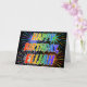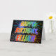 This multicolored and fun birthday greeting card design features the message "HAPPY BIRTHDAY," and the common first name "ELIJAH" with the letters having a colorful rainbow spectrum like gradient coloring pattern. The background of the front also features a colorful pattern inspired by the appearance of bursting fireworks. The inside features a personalized greeting message, or could perhaps be cleared and left blank if a message is to be written by hand instead. A birthday greeting card like this might be a fun way to acknowledge the birthday of somebody named Elijah. [~Z0000350]