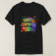 This exciting and vibrant shirt design features a fun bursting celebratory fireworks inspired pattern, and the message "HAPPY BIRTHDAY, EVERLY" having a colorful rainbow spectrum inspired gradient pattern. Shirts like this might be worn by the guests at a party being held in celebration of the birthday of somebody named Everly. [~Z0000453]