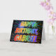 This vibrant, multicolored and fun birthday greeting card design features the message "HAPPY BIRTHDAY," and the common first name "GABRIEL" with the letters having a colorful rainbow spectrum like gradient coloring pattern. The background of the front also features a colorful pattern inspired by the look of bursting celebratory fireworks. The inside features a customizable greeting message, or could perhaps be cleared and left blank if a message is to be written by hand instead. A birthday greeting card like this could be fun to give to somebody named Gabriel on their birthday. [~Z0000350]