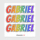 This exciting, multicolored, and fun sticker design features the common first name or given name "GABRIEL", with the letters of the name having a colorful rainbow spectrum like gradient coloring pattern. It might be a fun present to give to somebody who is named Gabriel. [~Z0000361]