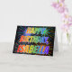 This vibrant, multicolored and fun birthday greeting card design features the message "HAPPY BIRTHDAY," and the common first name "ISABELLA" with the letters having a colorful rainbow spectrum like gradient coloring pattern. The background of the front also features a colorful pattern inspired by the look of bursting celebratory fireworks. The inside features a custom greeting message, or could perhaps be cleared and left blank if a message is to be written by hand instead. A greeting card like this might be a fun way to send a personalized birthday message to somebody named Isabella. [~Z0000350]