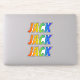 This exciting, vibrant, and multicolored sticker design features the common first name or given name "JACK", with the letters of the name featuring a colorful rainbow spectrum like gradient coloring pattern. It might be a fun gift to give to somebody whose first name is Jack. [~Z0000361]