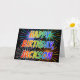 This fun, vibrant, multicolored birthday greeting card design features the message "HAPPY BIRTHDAY," and the common first name "JACKSON" with the letters having a colorful rainbow spectrum like gradient coloring pattern. The background of the front also features a colorful bursting fireworks inspired pattern. The inside features a custom greeting message, or could perhaps be cleared and left blank if a message is to be written by hand instead. This might be a fun way to acknowledge the birthday of somebody named Jackson. [~Z0000350]