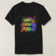 This exciting and fun shirt design features a lively bursting celebratory fireworks inspired pattern, and the message "HAPPY BIRTHDAY, JEREMIAH" having a colorful rainbow spectrum inspired gradient pattern. Shirts like this might be worn by the attendees at a birthday party being held for somebody named Jeremiah. [~Z0000453]