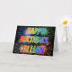 This fun, vibrant, multicolored birthday greeting card design features the message "HAPPY BIRTHDAY," and the common first name "JILLIAN" with the letters having a colorful rainbow spectrum like gradient coloring pattern. The background of the front also features a colorful pattern inspired by the appearance of bursting fireworks. The inside features a customizable greeting message, or could perhaps be cleared and left blank if a message is to be written by hand instead. This might be a fun way to acknowledge the birthday of somebody named Jillian. [~Z0000350]