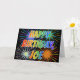 This vibrant, multicolored and fun birthday greeting card design features the message "HAPPY BIRTHDAY," and the common first name "JOE" with the letters having a colorful rainbow spectrum like gradient coloring pattern. The background of the front also features a colorful pattern inspired by the look of bursting celebratory fireworks. The inside features a customized greeting message, or could perhaps be cleared and left blank if a message is to be written by hand instead. A greeting card like this might be a fun way to send a personalized birthday message to somebody named Joe. [~Z0000350]