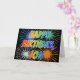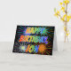 This fun, vibrant, multicolored birthday greeting card design features the message "HAPPY BIRTHDAY," and the common first name "JON" with the letters having a colorful rainbow spectrum like gradient coloring pattern. The background of the front also features a colorful pattern inspired by the appearance of bursting fireworks. The inside features a customizable greeting message, or could perhaps be cleared and left blank if a message is to be written by hand instead. A greeting card like this might be a fun way to send a personalized birthday message to somebody named Jon. [~Z0000350]