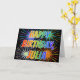 This fun, vibrant, multicolored birthday greeting card design features the message "HAPPY BIRTHDAY," and the common first name "JULIA" with the letters having a colorful rainbow spectrum like gradient coloring pattern. The background of the front also features a colorful pattern inspired by the appearance of bursting celebratory fireworks. The inside features a custom greeting message, or could perhaps be cleared and left blank if a message is to be written by hand instead. A greeting card like this might be a fun way to send a personalized birthday message to somebody named Julia. [~Z0000350]