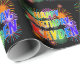 This vibrant and exciting birthday-themed wrapping paper design has the message "HAPPY BIRTHDAY, KAYDEN" having a colorful rainbow spectrum inspired gradient pattern, and a lively bursting celebratory fireworks inspired background pattern. Fun wrapping paper like this might be used when wrapping presents/gifts being given in celebration of the birthday of somebody named Kayden. [~Z0000456]