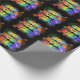 This vibrant and fun birthday-themed wrapping paper design has the message "HAPPY BIRTHDAY, KIARA" having a colorful rainbow spectrum inspired gradient pattern, and an exciting bursting celebratory fireworks inspired background pattern. Colorful wrapping paper like this might be used when wrapping gifts or presents that are being given in celebration of the birthday of somebody named Kiara. [~Z0000456]