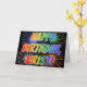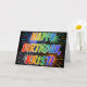 This fun, vibrant, multicolored birthday greeting card design features the message "HAPPY BIRTHDAY," and the common first name "KRISTI" with the letters having a colorful rainbow spectrum like gradient coloring pattern. The background of the front also features a colorful pattern inspired by the appearance of bursting celebratory fireworks. The inside features a personalized greeting message, or could perhaps be cleared and left blank if a message is to be written by hand instead. A greeting card like this could be a fun way to celebrate the birthday of somebody named Kristi. [~Z0000350]