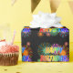 This exciting and vibrant birthday-themed wrapping paper design features the message "HAPPY BIRTHDAY, KRYSTAL" having a colorful rainbow spectrum inspired gradient pattern, and a lively bursting celebratory fireworks inspired background pattern. Vibrant wrapping paper like this might be used when preparing gifts or presents being given to celebrate the birthday of somebody named Krystal. [~Z0000456]