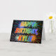 This fun, vibrant, multicolored birthday greeting card design features the message "HAPPY BIRTHDAY," and the common first name "KYLIE" with the letters having a colorful rainbow spectrum like gradient coloring pattern. The background of the front also features a colorful pattern inspired by the look of bursting celebratory fireworks. The inside features a customizable greeting message, or could perhaps be cleared and left blank if a message is to be written by hand instead. A birthday greeting card like this could be a fun way to send a customizable birthday greeting message to somebody named Kylie. [~Z0000350]