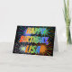 This multicolored and fun birthday greeting card design features the message "HAPPY BIRTHDAY," and the common first name "LISA" with the letters having a colorful rainbow spectrum like gradient coloring pattern. The background of the front also features a colorful pattern inspired by the look of bursting celebratory fireworks. The inside features a customized greeting message, or could perhaps be cleared and left blank if a message is to be written by hand instead. A greeting card like this might be a fun way to send a personalized birthday message to somebody named Lisa. [~Z0000350]
